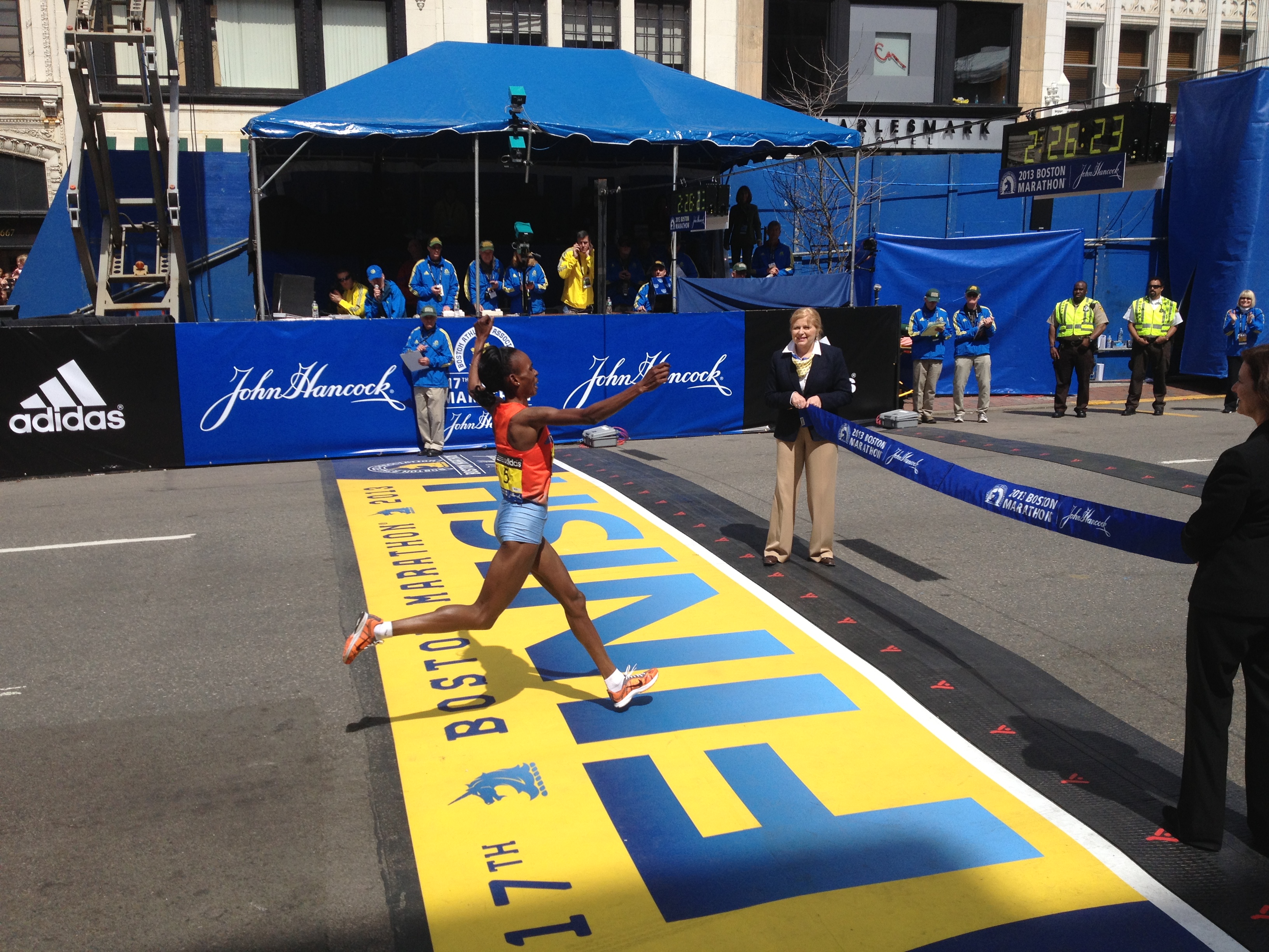 We were so proud to see him accomplish such an amazing feat and to watch as they played the Japanese national anthem. After spending seven years in Japan, we shared the country’s pride in watching one of their own win such a prestigious event. Then came the elite athletes, the women’s winner Rita Jeptoo, Kenya